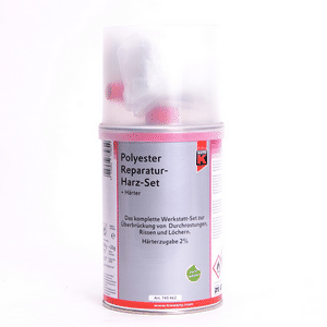 Benötigte Menge an Auto-K Polyester-Reparaturharz mit ca. 2% Härter gut vermischen.